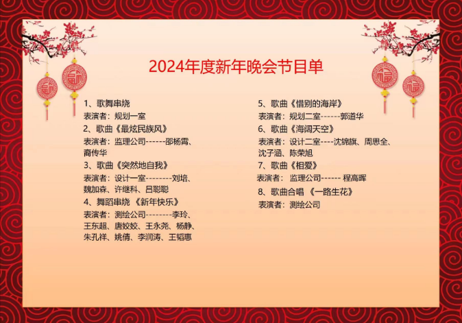 2024年1月20日,公司2024年迎新春聯(lián)誼會(huì)如期而至。這場(chǎng)晚會(huì)不僅是對(duì)過(guò)去一年的總結(jié),更是對(duì)全體員工的辛勤付出的嘉獎(jiǎng)。晚會(huì)中,精彩紛呈的節(jié)目、激動(dòng)人心的頒獎(jiǎng)典禮以及溫馨感人的互動(dòng)環(huán)節(jié),共同繪制了一幅公司文化的絢爛畫(huà)卷。